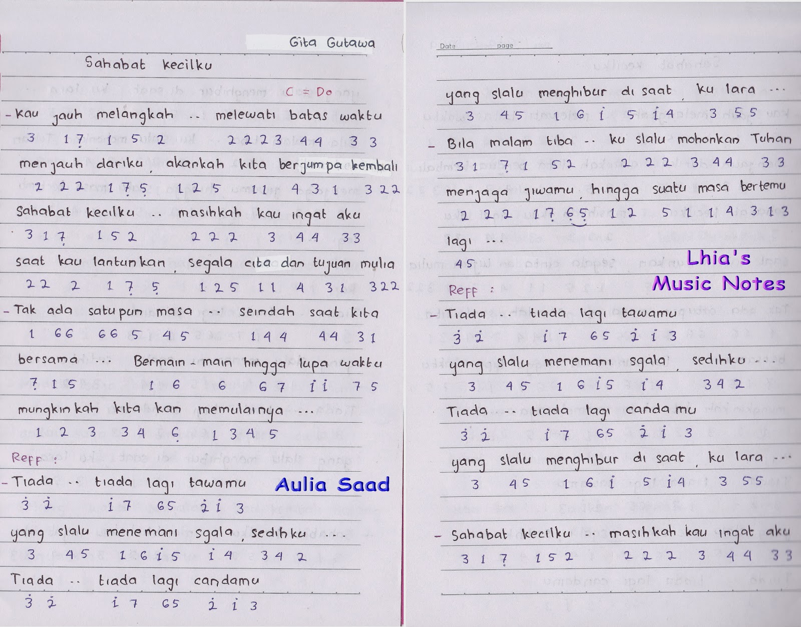 Not Angka Gita Gutawa Sahabat Kecilku Aulia s World